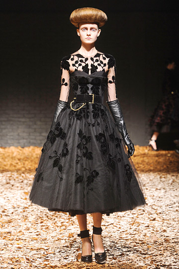 McQ’s AW2012 line commences with sexy and authoritative Eastern-European-esque outerwear; expertly-crafted, wooly, neutral hourglasses for the McQueen woman who, even at a lower-price point, feels like a masterpiece. It’s a scientific fact that any object appearing in a lit space will have a shadow. And, I think it’s a design fact that any McQueen creation in a lit space will have a more mysterious shadow than any object around it. What is this exquisite, “savage” darkness that follows and sways around each garment and wearer; perhaps it is a kill; perhaps it is the collective spirit of feathers that shingle it’s form (the peakock’s ghostly, all-seeing eye); perhaps it is the final punctuation for the poem born into any cloth that breathes among the scraps that Lee (Alexander) McQueen once touched.